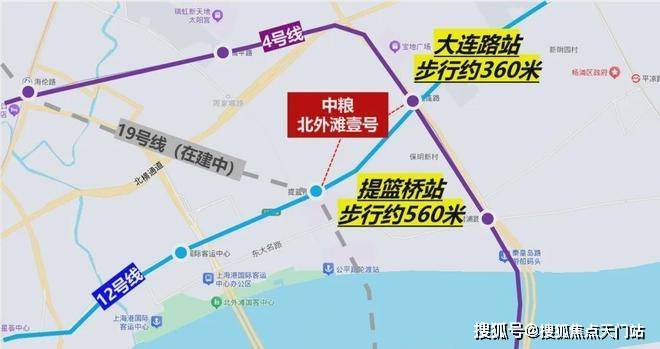 交通方面:项目周围环绕三条地铁,步行约360米到4、12号线大连路站,步行约560米到12、19号线(在建)提篮桥站。