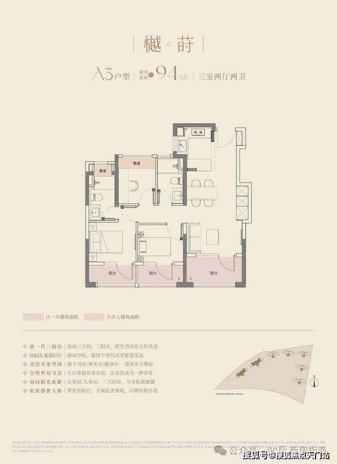 - 户型空间:横厅/三阳台设计成标配,阳台宽度2-3米,兼具休闲+晾晒;飘窗全赠送、可灵活改造;层高升级至3.0-3.1米;非承重墙设计,户型可按需改造
