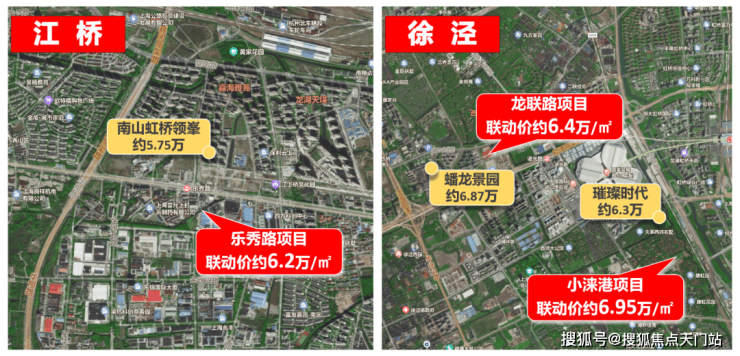徐泾小涞港项目,房地联动价约6.95万/㎡,该地块同板块同类型产品为约6.87万/㎡的蟠龙景园,与其相较上调约800元/㎡。