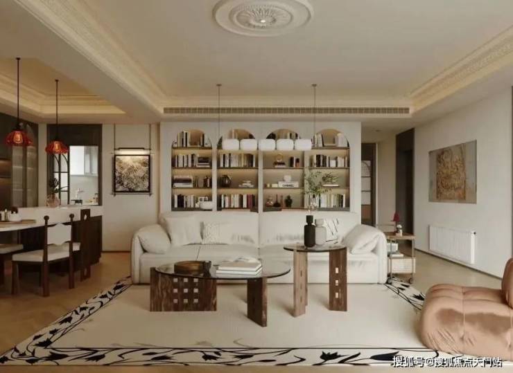 户内楼面高度不一致,错开之处有楼梯联系。但没有完全分为两层。(适合大面积住宅,小户型会显得局促)