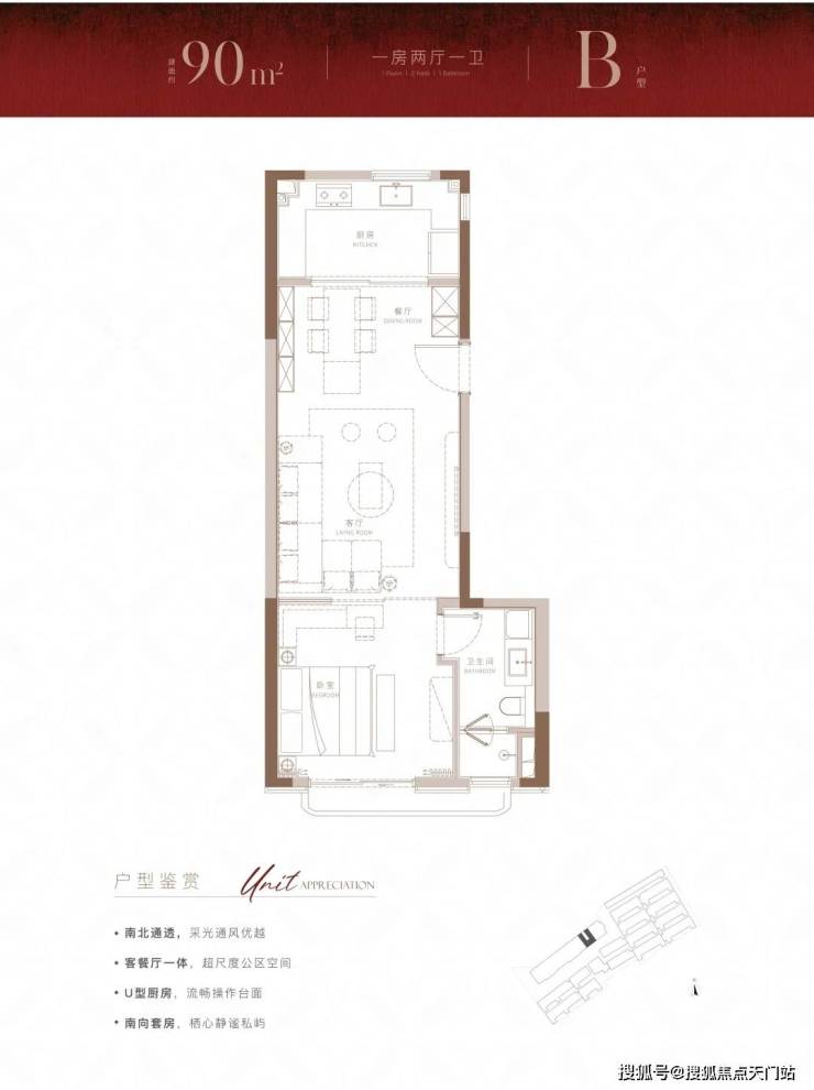 经典的 南北通透房型,卧室客厅采光皆丰沛, 一体化客餐厅带来的不仅是最便捷的烹饪动线,也为家庭成员之间的互动和交流日常提供了舒适空间,再加之 南北双卧设计,也保证了足够的温馨休息场地。
