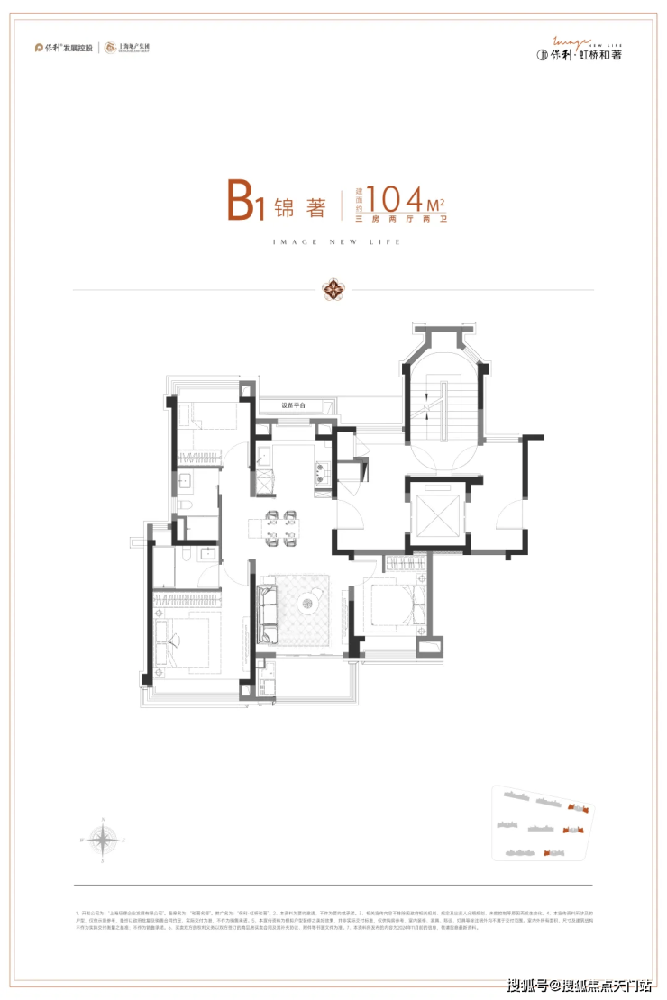 先说户型:如果你熟悉上海市场,你会发现目前市面上的户型普遍会面临:利用率低、收纳空间少、有连廊、卫生间少/功能性差、卧室太小不够等问题。 但保利虹桥和著的建面约104㎡3房2卫,却很好的解决了以上所有问题: