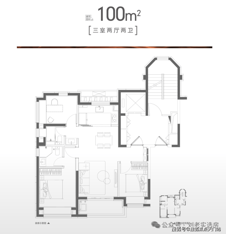 建面约100㎡的三房两厅两卫