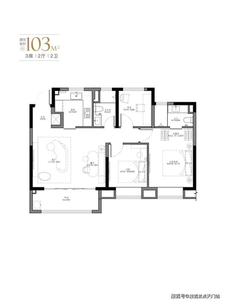 产品:103㎡、107㎡的三房两厅两卫及123㎡、129㎡的四房两厅两卫。