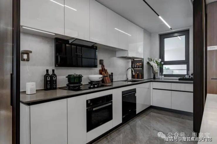 在每一个户型里,厨房皆配置高颜值玻璃移门,以集成铝板吊顶+LED嵌入式条形灯营造厨房顶部,飘窗处打造操作台与储物空间,高品质装修交付超薄镜面机身油烟机/防干烧燃气灶/洗碗机等品牌系列套装厨电,定制收纳橱柜/升降拉篮/谷物抽/多功能调味篮/碗碟拉篮/飘窗延伸平台等多重收纳组合还原整洁秩序,另有集成线性凉霸与末端净水器等考究设计,打造现代化美好厨房。