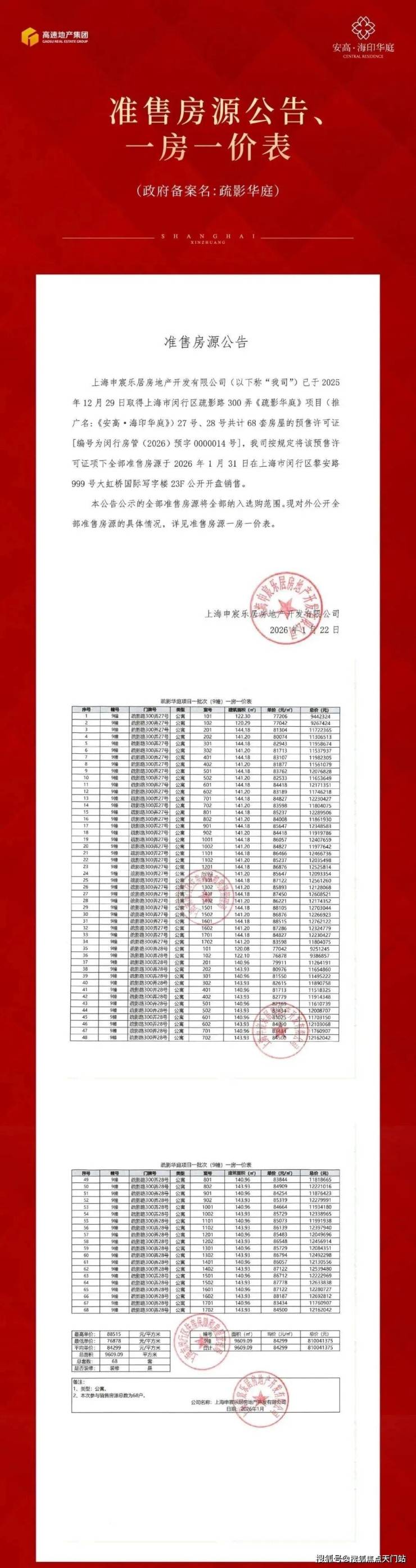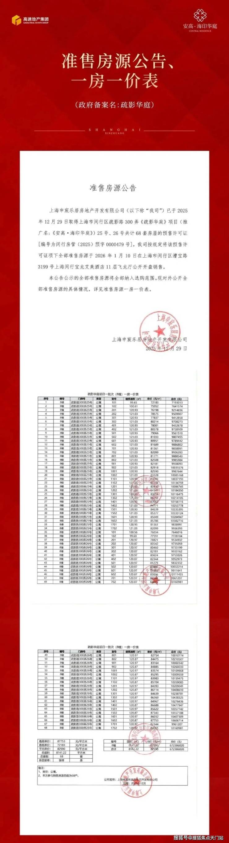 2025年7月24日,上海第六批次土拍首日,安徽高速经过78轮竞价最终以总价约36.89亿元竞得闵行莘庄地块,溢价率30%,楼板价56247元/㎡,装修标准4000元/㎡,成为莘庄地区“新地王”。