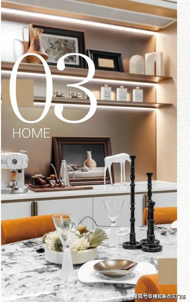 这种源于自然、忠于质感的坚持,在整体空间打造中显得尤为突出,客厅的电视背景墙选用了 定制鱼肚金岩板,而脚下的实木复合地板,则增添了一抹温馨宁静的氛围。