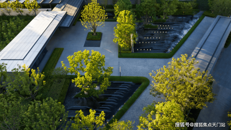项目景观团队使用新加坡景观设计团队CICADA诗加达,采用引江入园、以水带路的手法,将滨江舒阔的国际生活平移到社区内, 打造约3000方水景、6万㎡景观秘境 ,媲美全球奢华酒店。