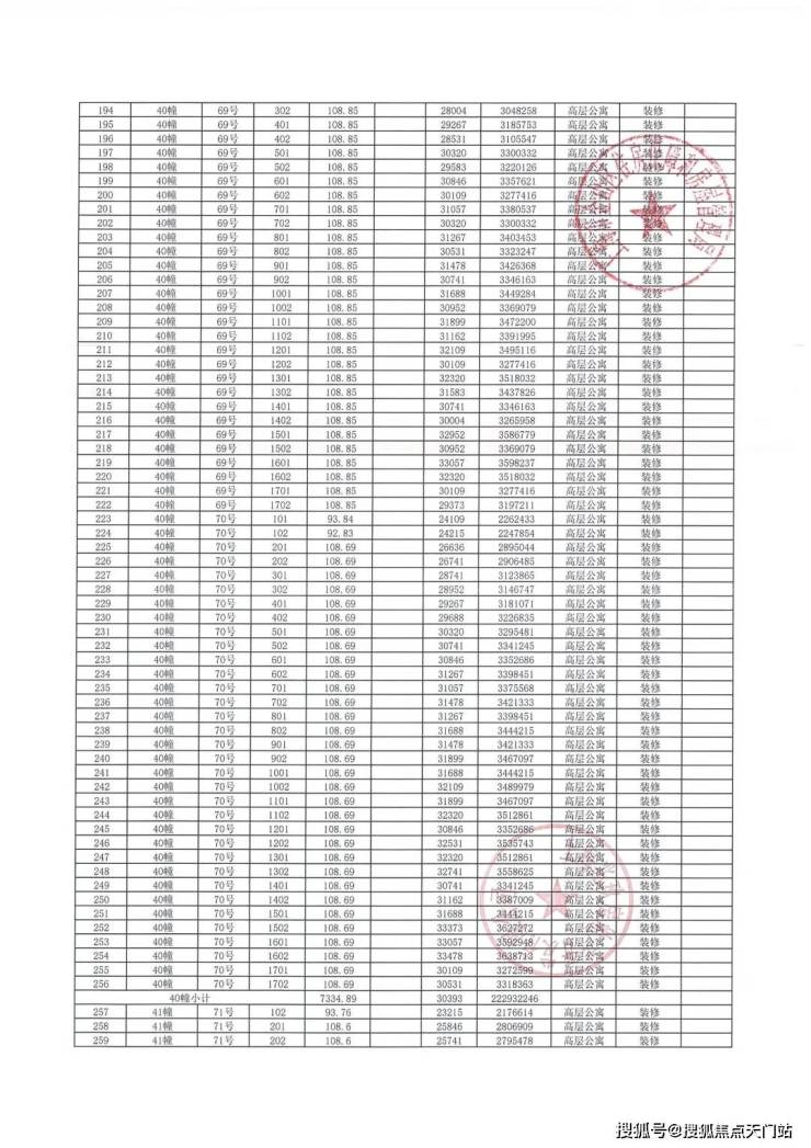 项目一房一价表