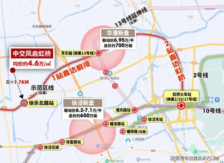 而作为新凤溪百万方大城的先行启动区,中交・凤启虹桥提前半年实景兑现。其地理位置得天独厚,且离市区较近,项目仅约1公里的上海示范线徐乐北路站(在建),未来将实现一站换乘 13 号线,两站直达虹桥枢纽。