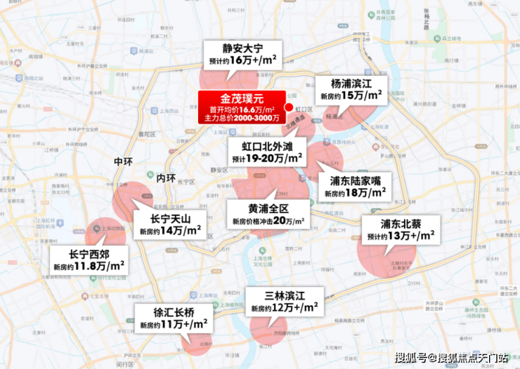 内环内核心板块新房的价格全面冲击20万/m²,内中环间的预期价格也来到12-16万/m²