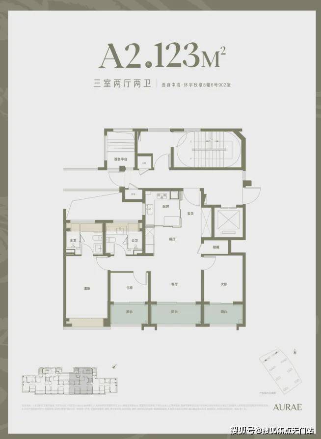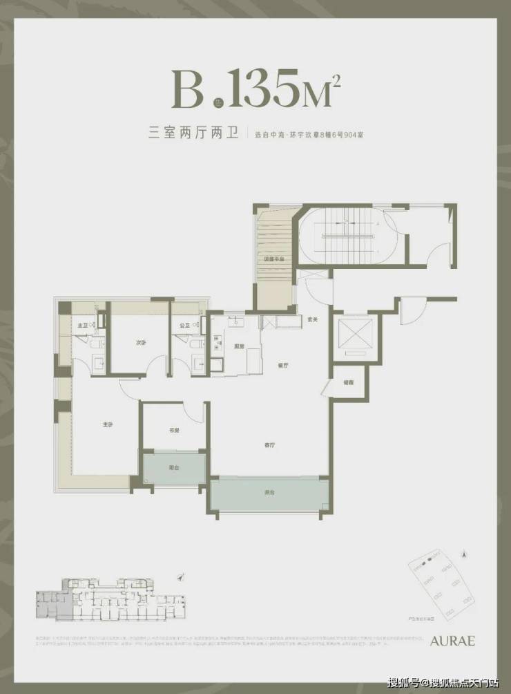 4、【新规后大三房】135平户型,三阳台,全飘窗,实得率约93%。每个卧室空间尺度舒适,这个户型非常适合需求强收纳的粉丝,收纳总量可达32.5平,实现收纳自由;