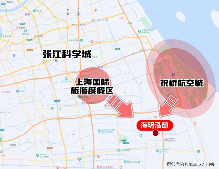 周边三大重量级规划加持,东侧是祝桥航空城,向北是国际旅游度假区,不远处还有张江科学城。