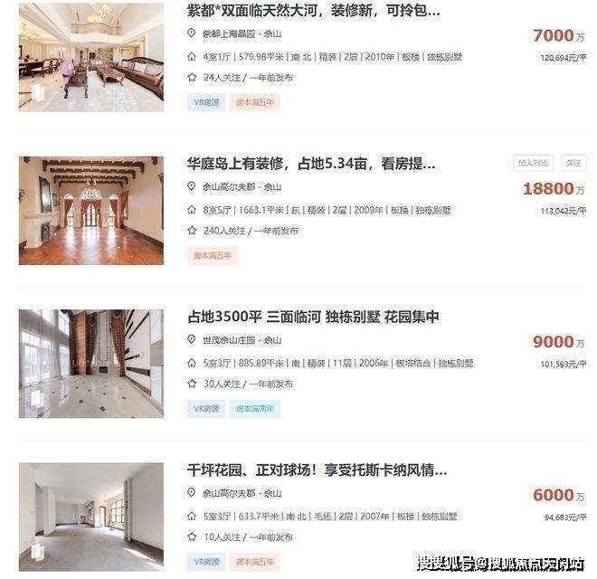 打开链家网不难发现,区域内的别墅项目动辄千万起步,三四千万的总价更是常态,甚至是上亿级别的别墅都比比皆是。