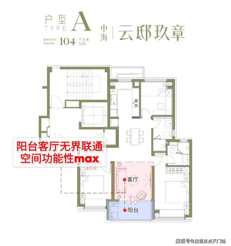 飞机户型公区的贯通性被加强,从北到南,厨房、餐厅、客厅、阳台全部打通,尤其是阳台和客厅紧密相连无界连通,空间感功能性拉满!