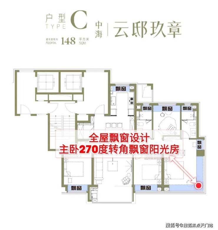亮点④全屋飘窗设计,主卧270度转角飘窗阳光房!