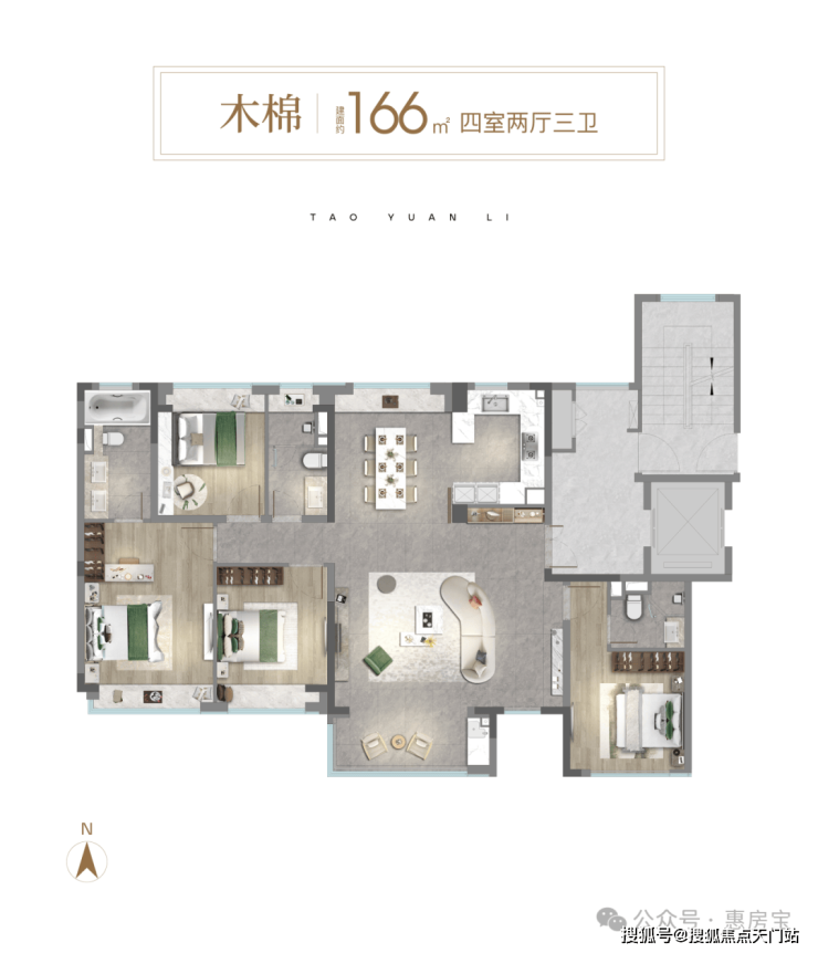 建面约106㎡,得房率高达约78%,做到了真正的正三房空间, 客厅面宽达到 约3.45米, 开放式可视厨房设计,搭配南向大面积阳台,打造开阔的一体化家庭公共活动空间,整体居住体验明亮开阔。建面约166㎡的宽奢四房设计 ,南向4.5开间设计 ,在大横厅设计的同时做到了餐客厅空间独立,将每一寸空间妥帖利用。