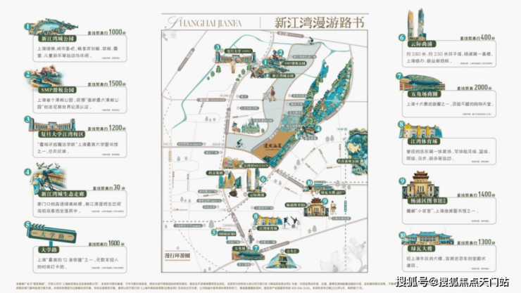 「1圈」·新江湾城骑⾏圈:通畅安全、环境舒适、全程约6.4公里的“新江湾城活力骑行圈”。