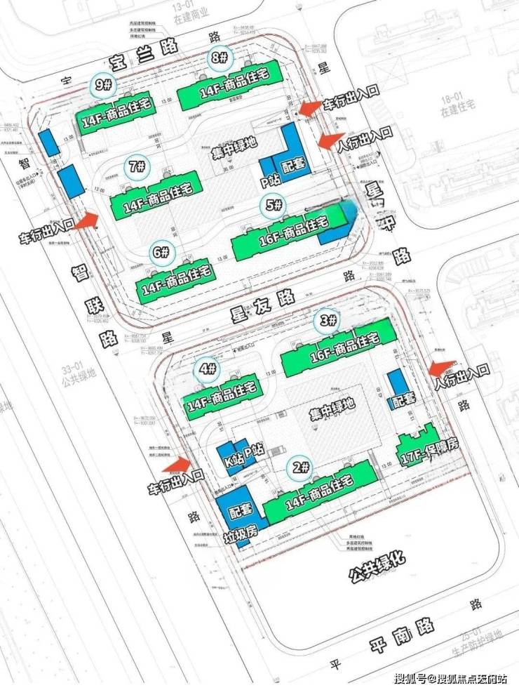 根据设计方案显示,项目 拟建6栋层高14F和2栋层高16F商品住宅,1栋层高17F的保障房, 网传可售房源约550套+。