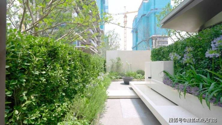 尤其是样板间所在的下叠约182㎡户型, 转角花园可充盈满眼绿意,首层大面积的落地窗更是打通内外视线交互。据了解,交付的绿篱至少会有1.6米,进一步隔绝了外部窥探,让花园更加私密。