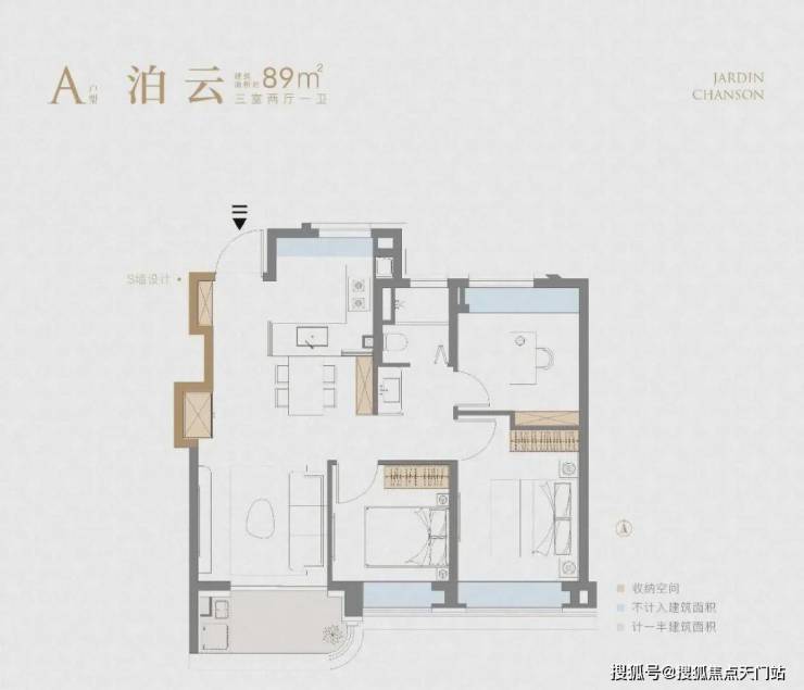 不到90㎡的建面实现3房一步到位,功能性上符合市场需求!同时利用科学的收纳和S墙设计保障了室内空间的井井有条,又通过大量飘窗和阳台等提升尺度感,尤其是厨房带飘窗你见过吗?