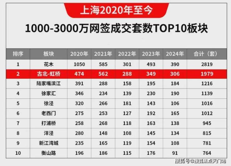 新房供应的缺失,也使得古北二手房成为圆梦古北的唯一选择,二手市场常年火爆,数据显示,2020年至今,上海 1000-3000万价格段的二手房网签成交量中,古北连续5年高居全市第二,仅次于面积和楼市体量都远超古北的花木板块!