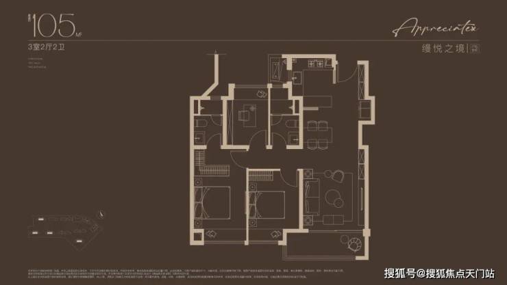 建面约105㎡3房户型,总价400万级即可上车!堪称同等总价段的改善天花板!三开间朝南,约9.6米大尺度南向面宽 ,最大程度揽光入室;客餐厅一体化 ,连接厨房和南向阳台,动线流畅,也是更大的欢乐聚场;创新研发S墙设计,预留冰箱专属位置,释放厨房使用空间 ;主卧套房设计,奢享独立卫浴和衣帽间,尽享尊崇。
