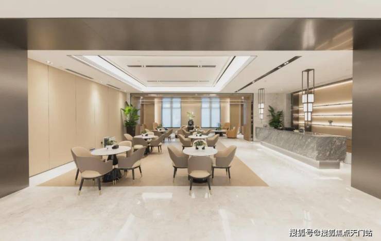再来看看人行入户大堂,挑高的精装大堂搭配宝华标志性的太阳花装饰,连天花板都嵌入了星空灯光,整个大堂仿若拥有了星级酒店的落客体验。