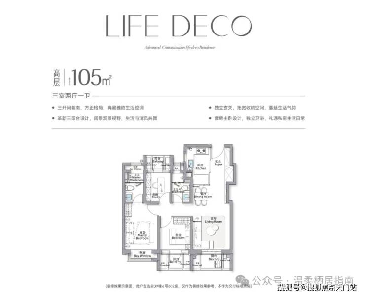 建筑面积约105㎡三房,进阶改善绝版“三阳台”户型,主力总价段约700万级,部分房源总价约650万级。