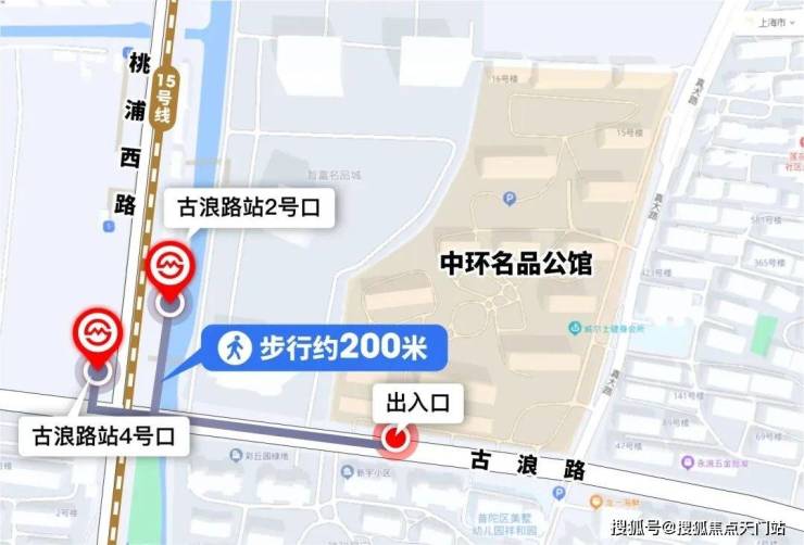15号线北接顾村公园,南接长风、天山、古北、吴泾等产业区,同时能与11、13、14多条线路换乘,是一条南北向高能级动脉。从项目南门出发,步行至15号线古浪路站仅约200米,是当下少有正宗地铁新房!