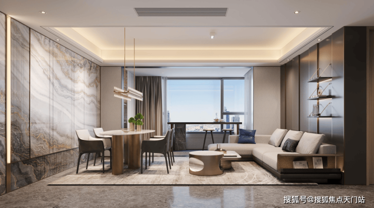 建面约105㎡为5.1米宽厅设计外接大阳台,这对黄金组合一方面撑开户内尺度,另一方面也让通风和采光俱佳。
