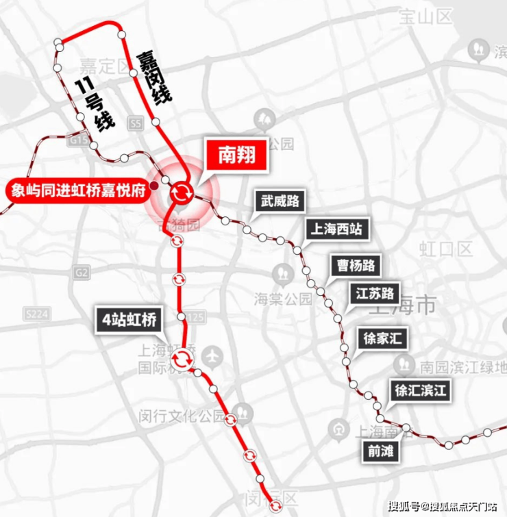 地铁11号线,向东可以直达真如、徐家汇、徐汇滨江和前滩等市区多个CBD,向西可以直达嘉定新城。