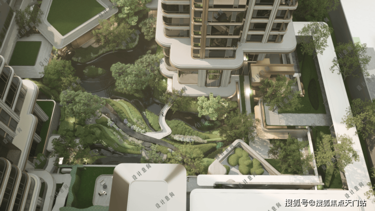 此外,抬板设计与下沉式庭院、挑空露台、空中廊桥、屋顶绿化等元素相结合,可以塑造层次更丰富的立体园林系统,营造出如森林溪谷般的城市山林景观。