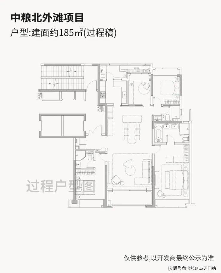 「中粮·北外滩壹号」即将入市的高层户型建面约185-228㎡纯粹4房,尺度感相当奢阔!高层户型均为两梯两户独立电梯厅配置,隐私性与尊崇感拉满!全落地窗设计,270°环幕大边厅户型相当惊艳!超大窗墙比+双套房格局形成多维观景的极致效果!仅90套,珍藏属性拉满!