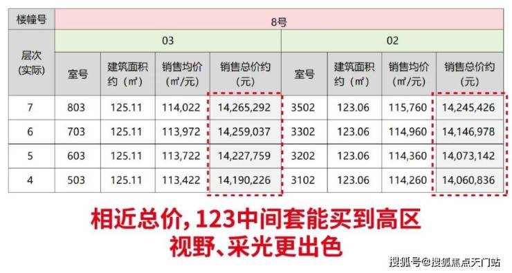 首先,中间套与同楼层边套相比,总价差约80-90万,差额相当于一辆豪车价。