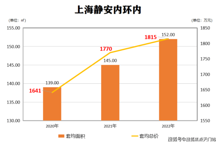 拉取最近三年静安内环内的新房数据,可以看出,新房的套均总价从2020年的1641万攀升至2022年的1815万,套均总价涨了近200多万。