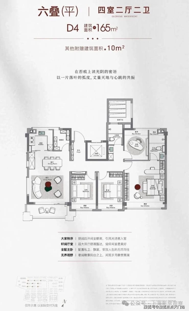 屋顶瞰景平台,随时打卡社区风景与兰香湖波光。 其它细节也非常到位, 独立电梯入户+超大玄关空间+四房配置 ,给足别墅生活的仪式感。