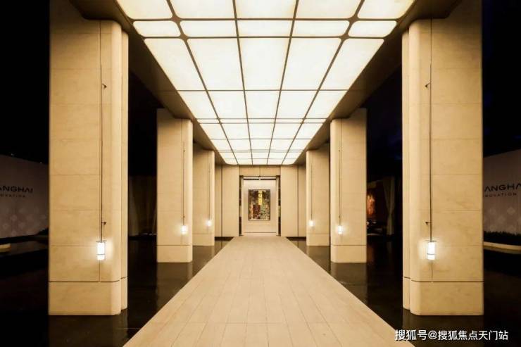通过迎宾楼,便来到了约20米长的精神游廊 ,该精神游廊同源招商玺 “树宅相守”的设计手法,更致敬建筑诗人斯卡帕“以自然光感去创造时间驻留感”的理念 ,通过对光线、材质与空间的创新打造,营造充满宁静的归家场域。