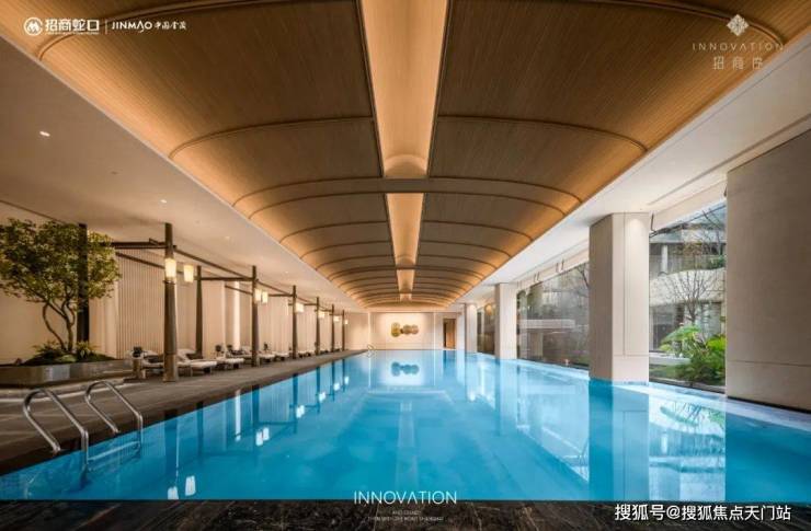 最让我心动的是这个无边泳池! 招商序以 “室内外自然无界”的设计手法,将无边泳池与庭院美景在视觉上连成一体,当阳光映照跃动的蔚蓝,业主畅游的同时还能包揽庭园诗意;深色木架构撑起白色帏幔,池边躺椅的设计也极具豪华酒店的优雅与尊贵,穹顶则延续着海派穹顶的经典设计元素,以细腻的木纹铝板打造。以往只在奢华度假酒店的体验在家楼下的会所也能拥有!