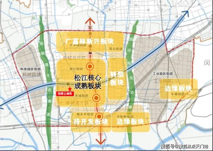 我们可以根据松江目前的发展,将它划分为5个不同属性的板块: