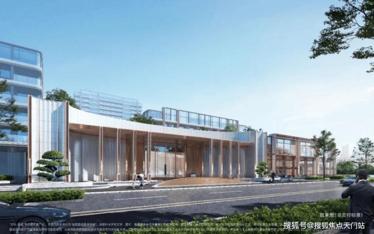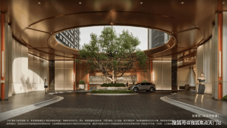 单元入口、入户大堂等处甄选 米色石材、铝板和金属镶框 进行多元混搭, 弧形镜面立面 让建筑更加美轮美奂。能成为南翔新一代住宅地标!