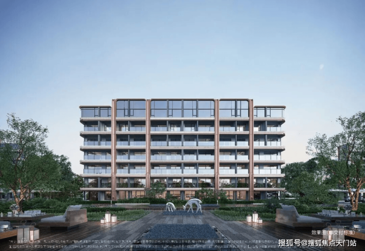 外立面,溯源海派经典的 ART DECO 风骨,采用经典的 三段式结构, 整体布局讲究对称和秩序,横竖线条交织,体现出简约工整的现代美感。