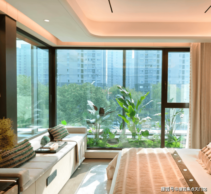 主卧套房式设计+带独立衣帽间+270度转角飘窗, 尊崇感与私密性拉满。