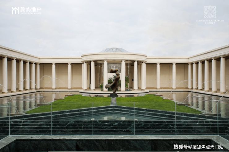 旅程从一道约36米长的社区入口大门开始。这并非简单的门扉,而是一条复刻凡尔赛宫花园三泉林的仪式轴。空间节奏遵循“放-收-放”的古典韵律,入口水景对称铺陈,人的视线与步伐被自然引导,心绪也随之沉静。它摒弃了浮夸的视觉冲击,转而追求一种步入艺术殿堂前的庄重与期待。