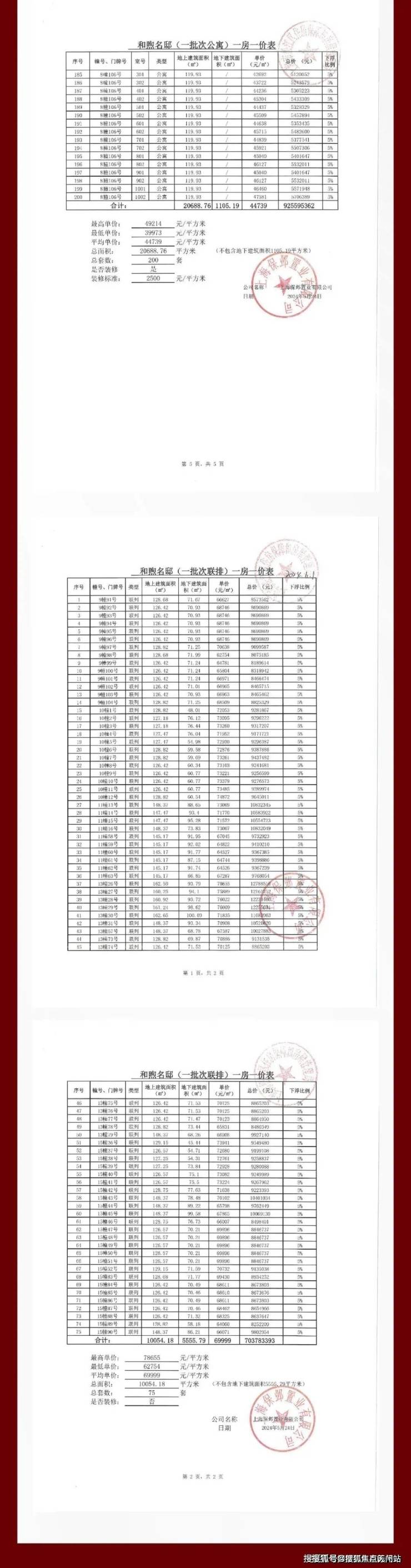 一房一价表: