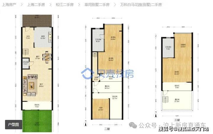 比如莘闵别墅区的千万级二手联排,主力户型甚至是约5米单开间。缺少会所公区,物业管理缺位,更是那个时代局限带来的普遍问题。