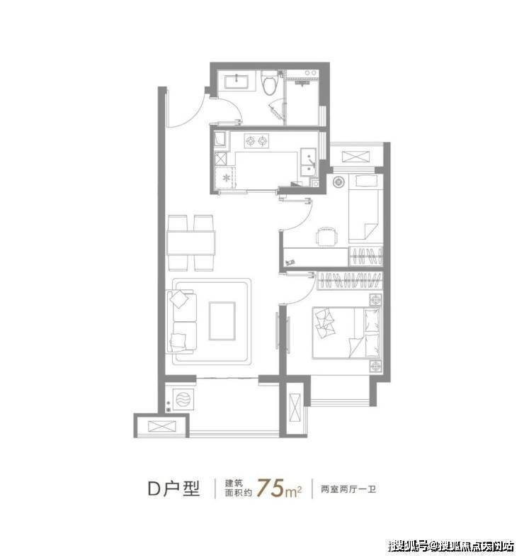 建面约75㎡2房户型,是目前少有的能以超低总价上车的户型。单套总价或许不到两百万起,装修交付。整个户型全明设计,户型方正,南北通透,双开间朝南+主卧带飘窗、客厅带宽面阳台的设计,保证了室内每个空间都能享受到惬意的阳光。