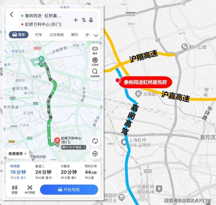 沿 嘉闵高架 向南,可以便捷通勤大虹桥。