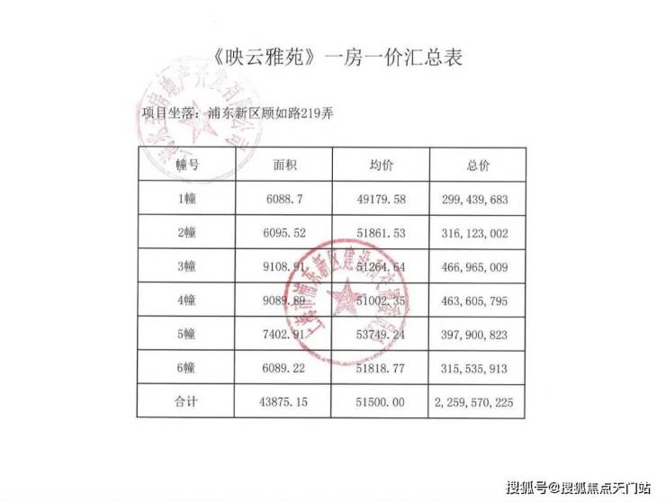 项目一房一价表▼
