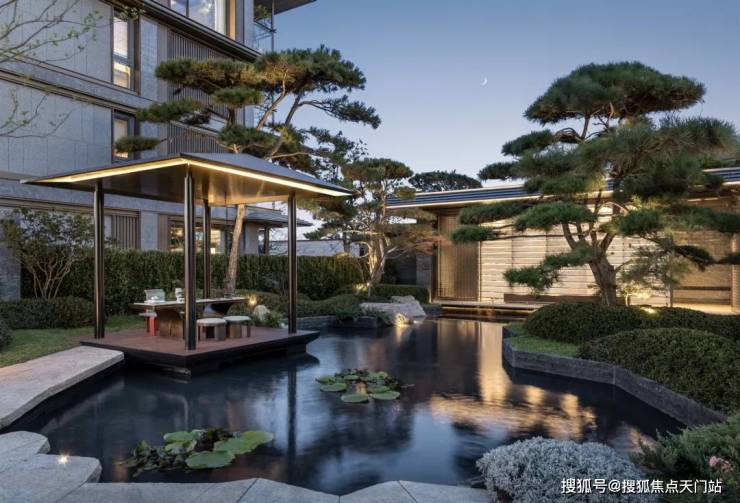 庭院的选材也极具讲究: 太行山金景石 堆叠成小山丘, 岭南古桩铁冬青中华原生乌桕树 移栽而来,蕴含 “聚财守业” 的美好寓意。 细节之处,经得起推敲,让人越看越有味道。